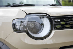 エクステリアでは特にフロントノーズが、丸みの強かった従来の形状から、上面をフラットに近づけたスクエアな造形に改められており、SUVらしい力強さが強調されている。これをスズキでは、「たくましさを感じさせる角を丸めた四角をモチーフとし、ユニークで愛着のわくデザインに進化させ」たと説明。