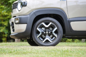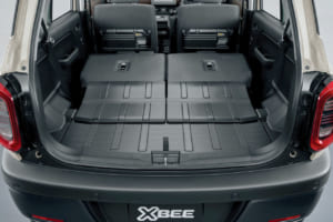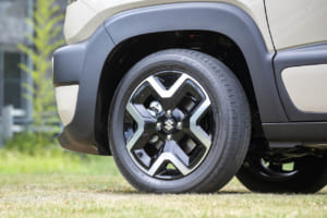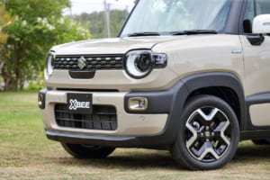 アルミホイールは車名「Xbee」のXをモチーフとしたデザインに。車体色は、新色「ミスティックブルーメタリック」を導入したほか、ルーフ/サイドカラーパネル/バンパーガーニッシュをブラックに統一したブラックタフ2トーンを含む、2トーン9色、モノトーン4色の、全13通りのカラーラインナップとなる。