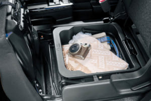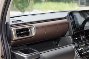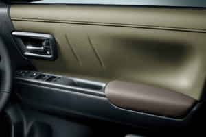 インテリアではインパネやドアトリムを全面刷新。SUVらしい力強さと上質さの表現をテーマとしつつ、フロントドアトリムとインパネを繋げて、室内が広く見えるデザインを採用している。さらに、革とステッチを模したパネルや、二段式センターコンソールを採用して、小型車らしい上質さも表現したとのこと。