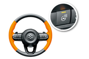 装備の充実にも努めており、パーキングブレーキの作動や解除を指先で行える電動パーキングブレーキ[ブレーキホールド付]や、ステアリングヒーター、急速充電に対応したUSB電源ソケット[Type-C、PD※9対応](2個)が採用されている。スズキ緊急通報やリモートエアコンなどのアプリ機能を利用できるスズキコネクトにも対応。