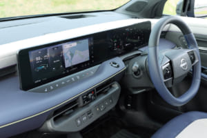 パワートレインには、モーター、インバーター、減速機を一体化した新開発の「3-in-1電動パワートレイン」が日産として初めて採用された。これにより、従来比でユニット容積を10%削減しながら、最大トルクは4%向上させている。さらに、モーターの振動を大幅に低減する新技術の採用や、ハウジングの高剛性化により、EVならではの滑らかで気持ちの良い走りと高い静粛性を実現した。足回りには、リアにマルチリンク式サスペンションを採用するとともに、日本の道路環境に合わせた専用のチューニングを施すことで、市街地から高速道路までフラットで快適な乗り心地を提供する。