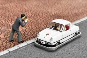 こどもサイズの自動車が、手のひらサイズのミニカーに