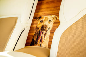 インテリアもまた、ベイリーへの愛情に満ちあふれている。室内はモカシンとクリーム・ライト・レザーを基調とし、ベイリーの毛色を彷彿とさせるダーク・スパイスとキャスデン・タンのアクセントカラーが配されている。ウッド・サーフェスには高光沢仕上げのロイヤル・ウォールナットが用いられ、重厚かつ温かみのある空間を演出している。