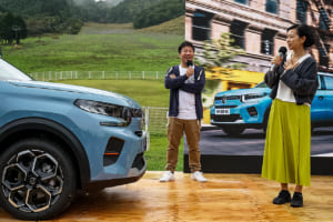 さらに、この日のためにフランスから来日したシトロエンのカラー&マテリアルデザイナーの柳沢知恵さんによる、新型C3の各部紹介も注目を集めた。最新シトロエンのデザインテーマから、新型C3に散りばめられたダブルシェブロンの意匠、エンブレムの素材、2CVを意識したボディカラーの採用、内装へのこだわりなど、ふだんなら聞くことができないような開発秘話が次々と飛び出し、メインステージ前に集まっていた来場者も興味津々。柳沢さん自らが行う解説に耳を傾けていた。