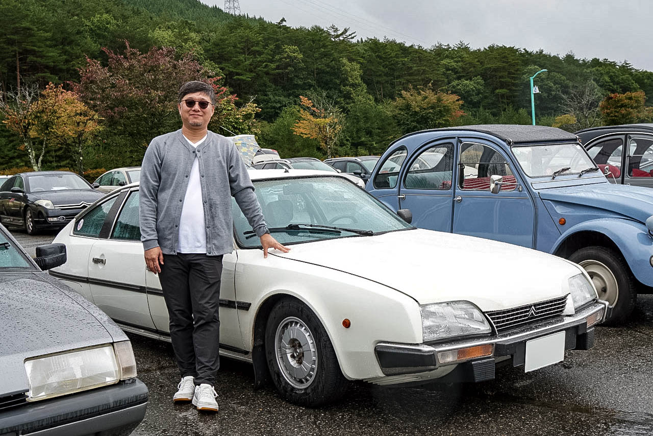 「20歳くらいのとき、ペタンコに車高が落ちているCXを正面から見た時、アダムスキー型UFOみたいなそのフォルムに衝撃を受けました。それでシトロエンとCXが気になりだしたのですが、ちょうど出物が出た4年くらい前に手に入れました。でも2年前、このイベントに参加しようとした際に故障してしまい、別のクルマで行くことになったんです。なので、今回はそのリベンジを果たすことができました(笑)」