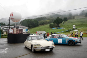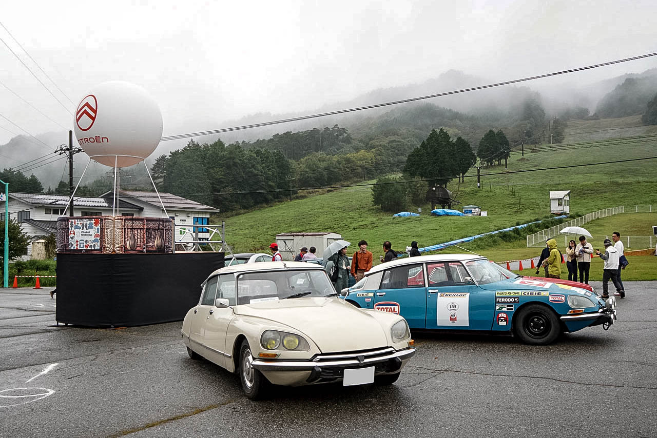 当日はあいにくの雨模様だったが、駐車場には朝から続々とシトロエンが集まり始めた。参加者の中には、前夜祭が開催された南乗鞍キャンプ場からパレードランで来場するクルマも。新型C4を先頭に、2CVからベルランゴまで新旧シトロエン55台が連なって会場入りした。