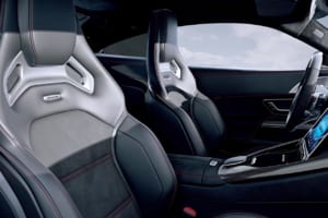 インテリアにもAMG専用アイテムが多数採用されており、スポーツ走行をサポートする「AMGパフォーマンスシート」が標準装備となる。シート素材はナッパレザー(標準4色、有償3色)や、有償オプションの「ナッパレザー/MICROCUT」(2色)、「MANUFAKTURナッパレザー」(5色)などから選択可能。