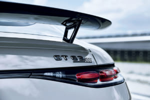 リアには、スクエアデザインのデュアルツインテールパイプと、カーボンファイバー製の固定式リアウイングスポイラーが標準装備。リアバッジ横には、モータースポーツとのつながりを強調する、専用のチェッカーフラッグ・エンブレムが追加された。