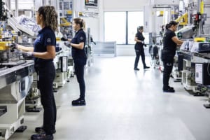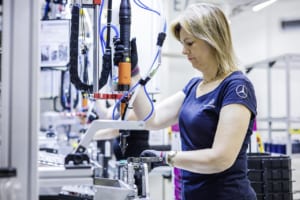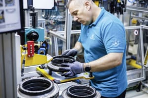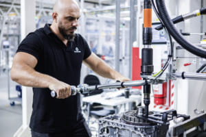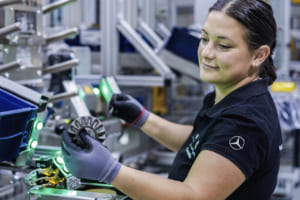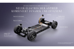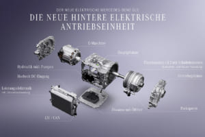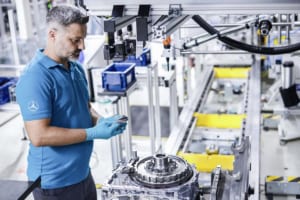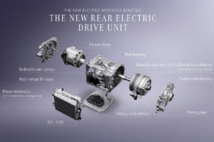 組立ラインの詳細について述べれば、次の通りとなる。面積:約15,000平方メートル/全長:約1,000メートル/工程数:200以上の手動および自動工程。この新ラインの従業員は、すべてセベシュ拠点の他部署から再配置され、広範な再訓練プログラムを通じて新たな役割を担う。ここで生産される電動ドライブユニットはメルセデス・ベンツが自社開発したもので、電気モーター、パワーエレクトロニクス、ギアユニットの3つの主要サブシステムで構成される。