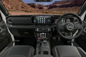 このほか、ブラックフロントグリル、フリーダムトップ3ピースモジュラーハードトップ(ブラック)、専用17インチ・アルミホイール、LT255/75R17マッド&テレインタイヤ、革巻きシフトノブ、フロントシートヒーター、ロゴ刺繍入りナッパレザーシート、オーディオナビゲーションシステム(Uconnect)12.3インチ・タッチパネルモニター、フルカラー7インチマルチビューディスプレイ、スキッドプレートなどを装備。