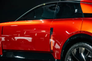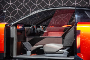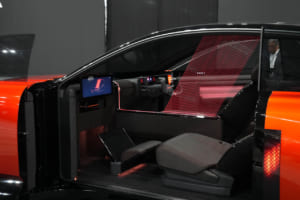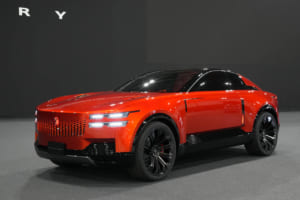 これは、「日本の自動車産業がこれだけの力を持っている」ことを世界に示す試みでもある。そのこだわりは、内外装のディテールに顕著だ。クーペコンセプトには、螺鈿(らでん)や西陣織、緞通(だんつう)の絨毯、江戸彫金のエンブレムといった日本の伝統工芸が惜しげもなく採用されている。外板色の「緋色(ひいろ)」も鳳凰をイメージした日本の伝統色である。