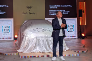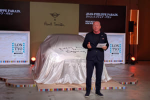 続いて登壇したMINI部門グローバル責任者のパラン氏は、両ブランドの深い関係性について触れ、「MINIとポール・スミス氏との関係は、1998年の最初のアイコニックなエディションにまで遡ります。驚くべきことに、当時そのお気に入りのブルーで彩られたクルマの80%以上が、ここ日本で販売されました」と、日本との浅からぬ縁を明かした。