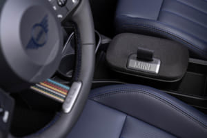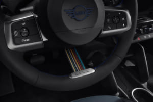 このポール・スミスのアイコンである「シグネチャー・ストライプ」は、ノッティンガム・グリーンのルーフ後部(運転席側)に施される。足元には、ダーク・スチールで淡いクリア・コーティングを施し「Paul Smith」のレタリングが入った18インチアロイ・ホイールが装備される。さらに、フロントとリアのMINIエンブレムには専用色のブラック・ブルーが採用され、リアゲートの水平な黒のハンドルにはポール・スミスのサインが施されるなど、細部にまでこだわりが詰め込まれている。