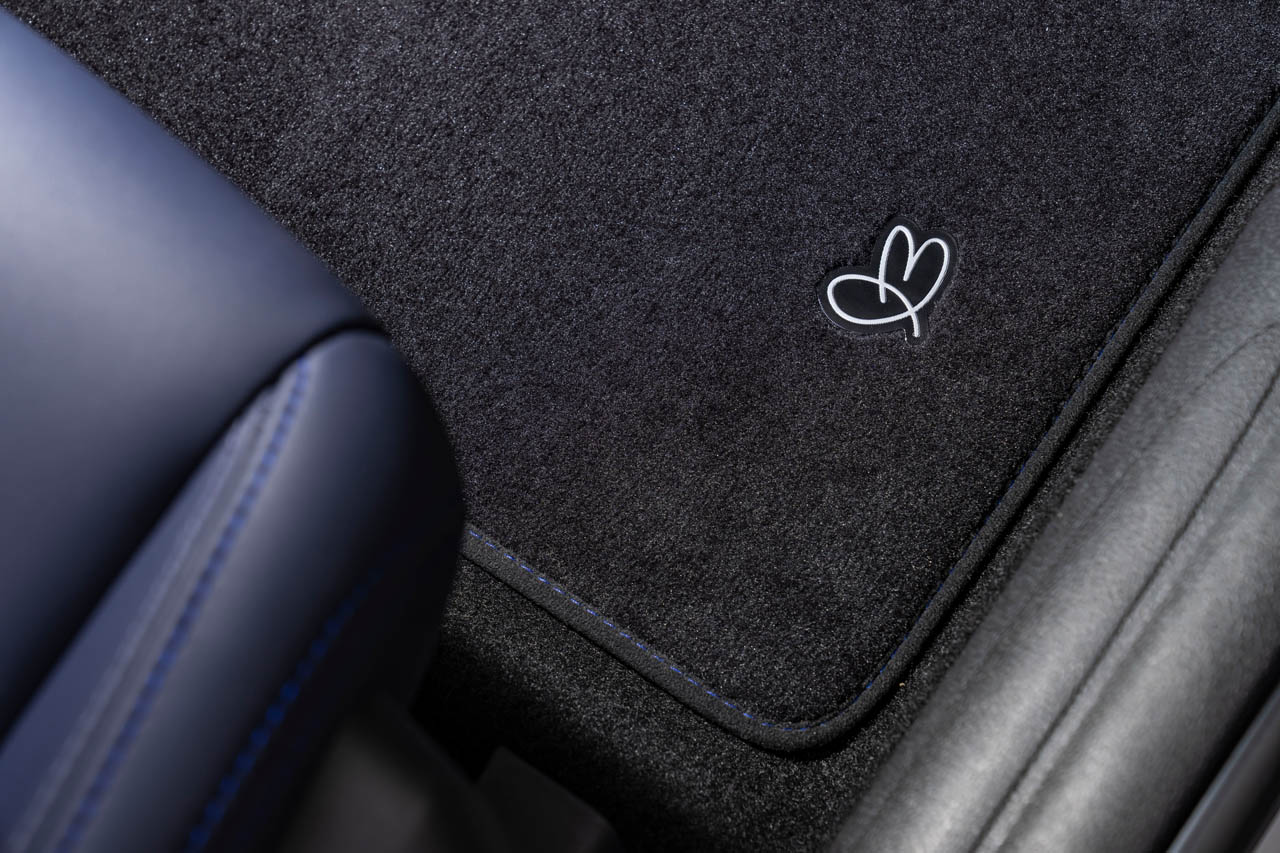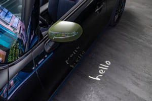 そして、「このクルマはとてもポジティブです。キーでドアを開けると、まず地面に『Hello』と映し出されます。そしてドアを開けると『Every day is a new beginning(毎日が新しい始まり)』という私のモットーが記されています。これは、毎日が素晴らしい日ばかりとは限らなくても、明日はきっとより良い日になる、ポジティブでいこう、という意味です」と、デザインに込められた哲学を明かした。このモットーは、両ブランドが共有するポジティブなマインドセットを反映したものであり、さらに「フロアマットには、私にとって幸運のシンボルである『ウサギ』の手描きイラストが隠されています。このクルマに乗れば、きっと素晴らしい時間を過ごせるはずです」と、遊び心あふれるディテールを紹介した。