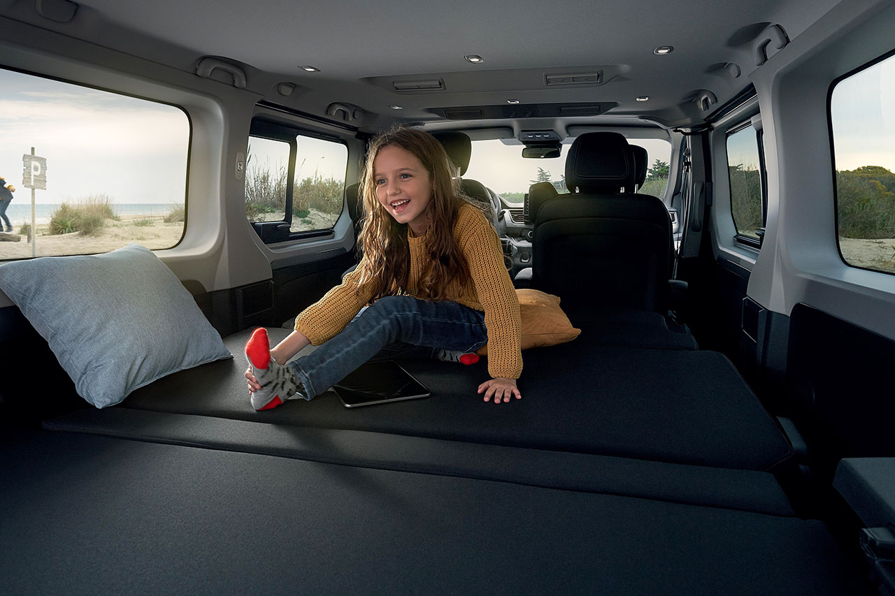 インテリアには8インチスクリーンのEasy Linkマルチメディアシステム(ワイヤレススマートフォン複製機能付き)、自動クライメイトコントロールが備わり、新世代の運転支援システムなども装備される。車中泊向け装備としては、前述のキッチンモジュールに加え、ダブルソファベッド、2列目の回転式シート2脚が標準で、上位グレードの「アイコニック」には折りたたみ式テーブルも含まれる。