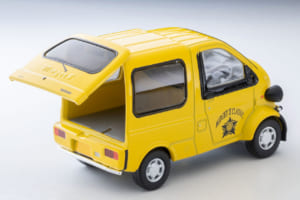 さて、トミーテックが今回製品化するのはこのミゼットIIのうち、追加当初のカーゴ(1997年式)である。カーゴにはRタイプとDタイプのふたつのグレードがあったが、ミニカーとなったのはこのうち上級グレードであるRタイプ。愛嬌のある小動物のようなルックスが見事に捉えられているのは、写真からお分かりの通りである。細部までの仕上げに一切手抜きがないのはもちろん、リアゲートが開閉可能であるのも見逃せない。