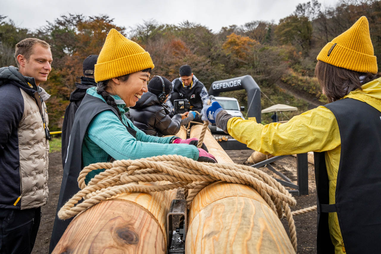 2日目も過酷さは増す。チーム戦のフィジカルタスク「FITNESS 2」に始まり、前日に学んだロープワークを実践し、丸太で橋を構築してディフェンダーで渡る「GROUND BRIDGE」、ウィンチで丸太を撤去してからオフロードコースを走破する「WINCH & OFF-ROAD」、車両のサラウンドカメラシステムを駆使してQRコードを探す「CAMERA」など、まさに冒険者に求められる総合力が試された。