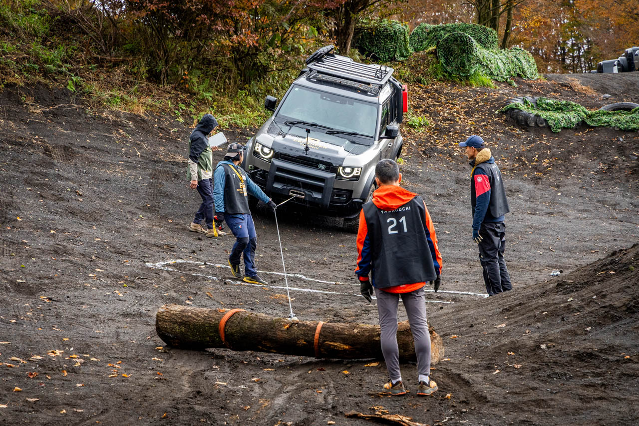 ル・ボラン編集部が現地を訪れたところ、その内容は想像以上に過酷かつ多角的だった。もちろん、富士ヶ嶺オフロードのハードなオフロードコースを走行するタスクも存在する。しかし、競技の核となるのは、3人1組のチームワークである。書類選考を通過した24名の参加者は、ディフェンダーのオーナーもいれば、そうでない人もいるという多様な顔ぶれ。彼らが3人1組となり、役割を分担しながら困難なタスクに挑む形式で、一個人のドライビングスキルだけを競うものではないのが最大の特徴だ。