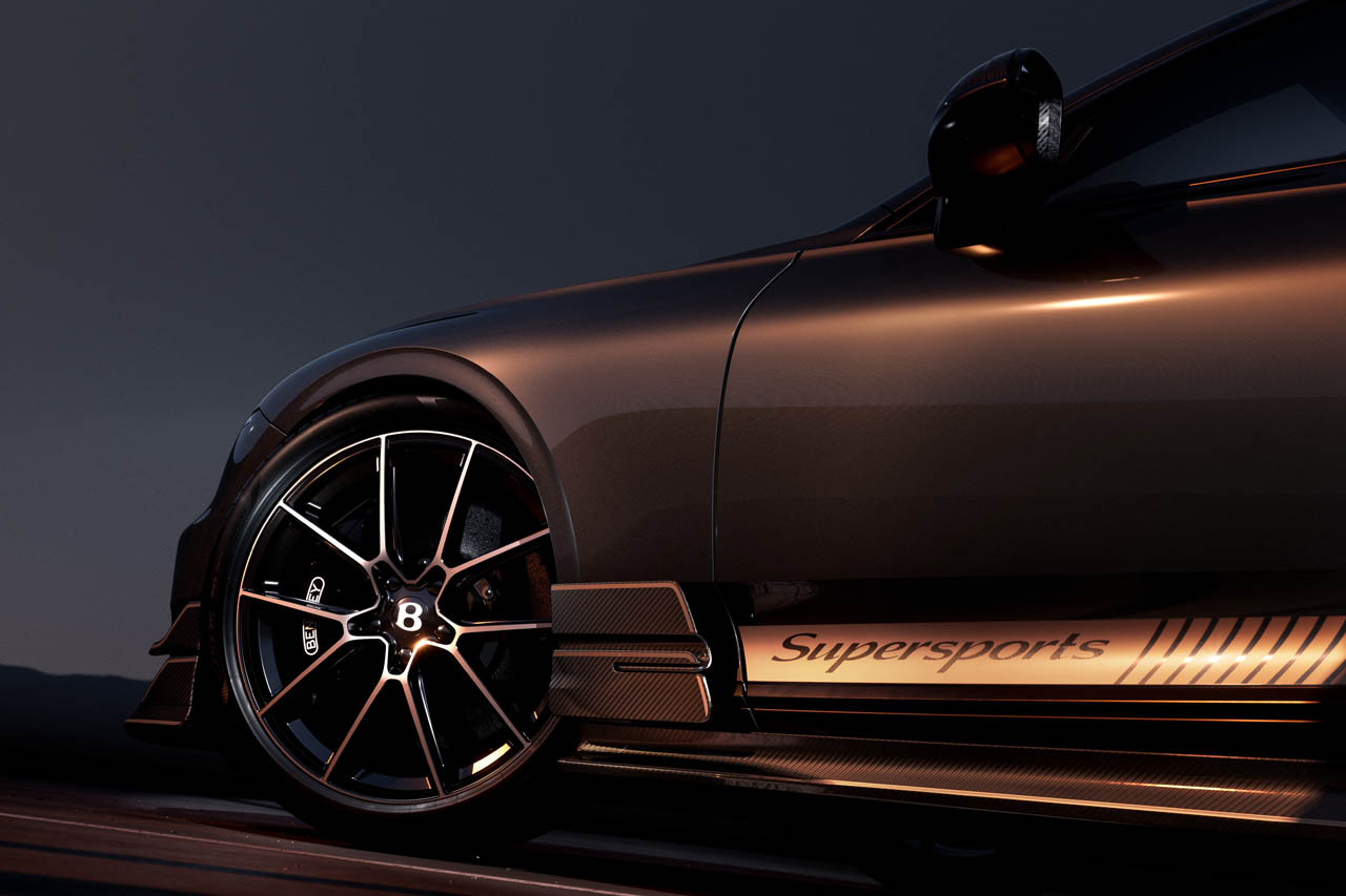 エクステリアは、ベントレーのグランドツアラー史上最もアグレッシブなデザインとなっている。そのすべてが「形態は機能に従う」の原則に基づき、ダウンフォースを最大化するために設計された。ベントレーのロードカー史上最大となるフロントスプリッター、カーボンファイバー製のダイブプレーン(カナード)、サイドシル、リアディフューザー、そして固定式のリアウイング など、多くのカーボン製エアロパーツを装着。これらにより、コンチネンタルGTスピードを300kg以上上回るダウンフォースを発生させる。