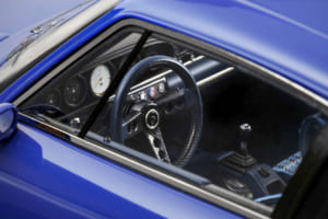 フックス風ホイール、前後の灯火類、メッシュ類、ウィンドウ・パーツ、インテリアに至るまで、部品の加工や工作は極めて正確かつ清潔に行われており、一般的には粗が目立ちがちな1/18というラージ・スケールにもかかわらず、隙のない仕上がりだ。プライス・タグに相応しい優れたコレクターズ・アイテムと言って良いだろう。