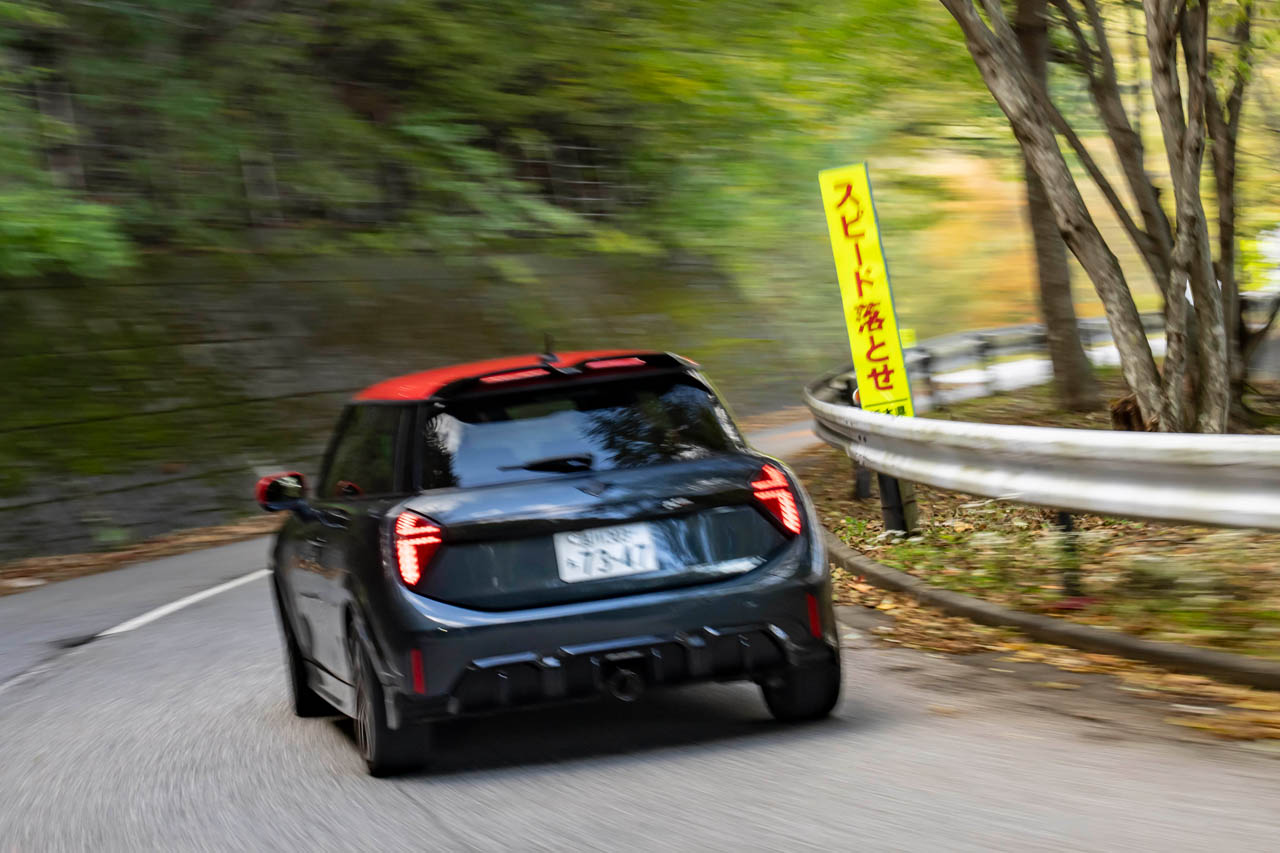 「ミニ JCW」が紅葉の日光・いろは坂を駆ける。独BMWチームを魅了した「48のカーブ」と231psの熱情