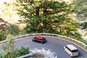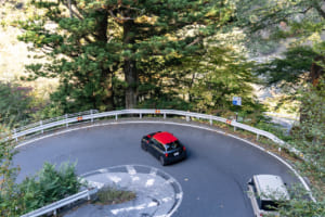 この過酷かつ魅力的なワインディングに挑んだのは、MINI ジョン・クーパー・ワークスである。そのボンネットの下にはパワフルな2.0L 4気筒ツインターボ・ガソリンエンジンが搭載されており、最高出力231ps(170kW)、最大トルク380Nmを発揮する。この余裕あるパワーが、いろは坂に点在する48のカーブの一つひとつを、純粋なドライビングプレジャーへと変えていくのである。