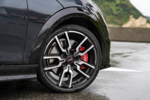 足周りには特別にチューニングされたサスペンションが奢られ、俊敏なハンドリングによるMINI特有の「ゴーカート・フィーリング」を実現している。また、JCWのロゴが輝くチリ・レッド塗装のブレーキ・システムは、過酷な状況下でも最高の制動精度と安全性を保証するものだ。