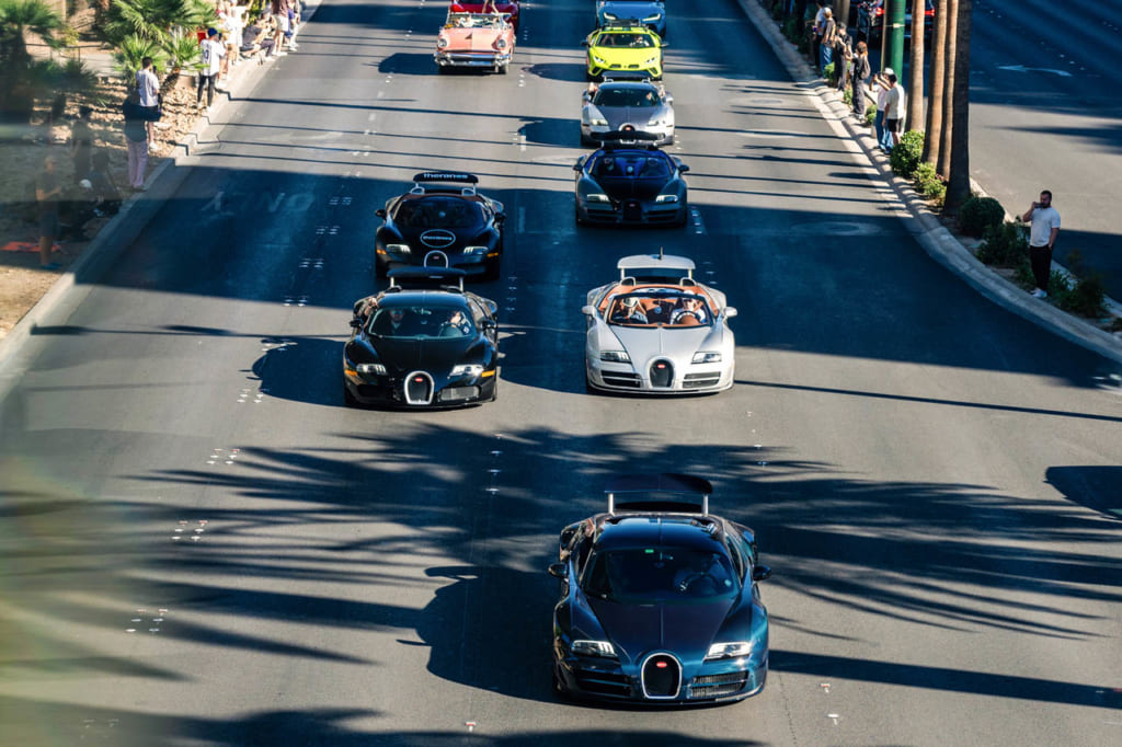 祝宴の翌日には、集結したヴェイロンがラスベガス・ストリップをパレードする「トゥール・デレガンス」が開催された。初期の16.4からグラン・スポーツ、スーパースポーツに至るまで、多彩なハイパーカーが連なって走行する姿は、自動車史に刻まれる壮観な光景となった。