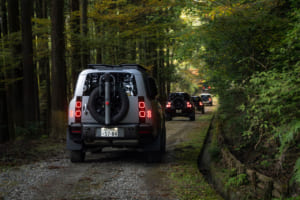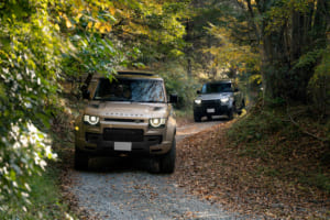 また、参加者自身がステアリングを握るプログラムも充実していた。「ミニテラポッド+バンク」では、凹凸のある路面や斜面を自身の運転でクリアしていくことで、悪路走行における車両のコントロール性を体験できた。さらに、会場内に設けられた特設オフロードコースでの走行や、実際の自然環境の中を走る「林道試乗」、そして周辺の公道を走る「一般道試乗」と、あらゆるシチュエーションでディフェンダーの懐の深さが披露されたのである。