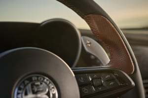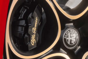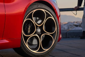 19インチアルミホイール(ゴールドダイヤモンドカット仕上げ)、ブレーキキャリパー(ブラック、ゴールド文字) 、エクステリアミラーハウジング(グロスブラック・イタリア三色旗バッジ付き)、スポーツレザーシート(ブラック、タンカラーアクセント入り)、センターアームレスト(タンカラーステッチ、INTENSAロゴ)、ダッシュボード/ドアパネル(タンカラーステッチ) 、スポーツレザーステアリング(タンカラーアクセント)、ALFAアクティブサスペンション