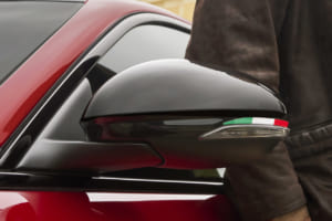 20インチアルミホイール(ゴールドダイヤモンドカット仕上げ)、ブレーキキャリパー(ブラック、ゴールド文字)、エクステリアミラーハウジング(グロスブラック、イタリア三色旗バッジ付き)、スポーツレザーシート(ブラック、タンカラーアクセント)、センターアームレスト(タンカラーステッチ、INTENSAロゴ)、ダッシュボード/ドアパネル(タンカラーステッチ)、スポーツレザーステアリング(タンカラーアクセント)、ALFAアクティブサスペンション
