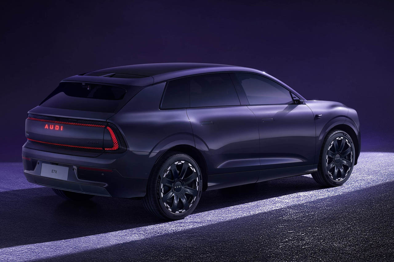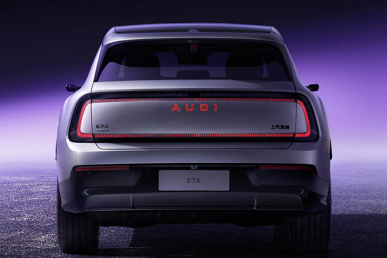今回発表された「AUDI E7X」は、2025年の広州モーターショーで披露されたコンセプトカー「AUDI E SUV concept」の量産モデルという位置づけだ。アウディブランドとして「E5スポーツバック」に続く2番目のモデルであり、セグメントとしては完全電動のプレミアムSUVに分類される。