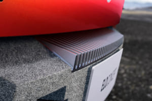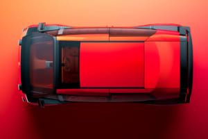 エクステリアデザインは、都市の景観に明るさをもたらす「エネルギーのバブル」をイメージしており、光の当たり方によってオレンジから赤、黄色へと変化する鮮やかなボディカラーが採用された。フロントおよびリアのバンパーには、軽量で復元力のある発泡ポリプロピレン素材が使用されており、これはデザインのアクセントであると同時に、軽い衝撃から車体を守る機能的な役割も果たしている。また、リアドアは半円形の形状でルーフまで回り込んでおり、4.5平方メートルにも及ぶ広大なガラスエリアがキャビンに溢れるほどの光を取り込む設計となっている。