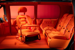 「WORK」モードでは、回転する運転席と展開式のテーブルを活用して、快適なモバイルオフィスを作り出すことができる。ビデオ会議のスケジュールや映像をフロントガラスのディスプレイに投影するなど、デジタルデバイスとの連携も考慮されている。