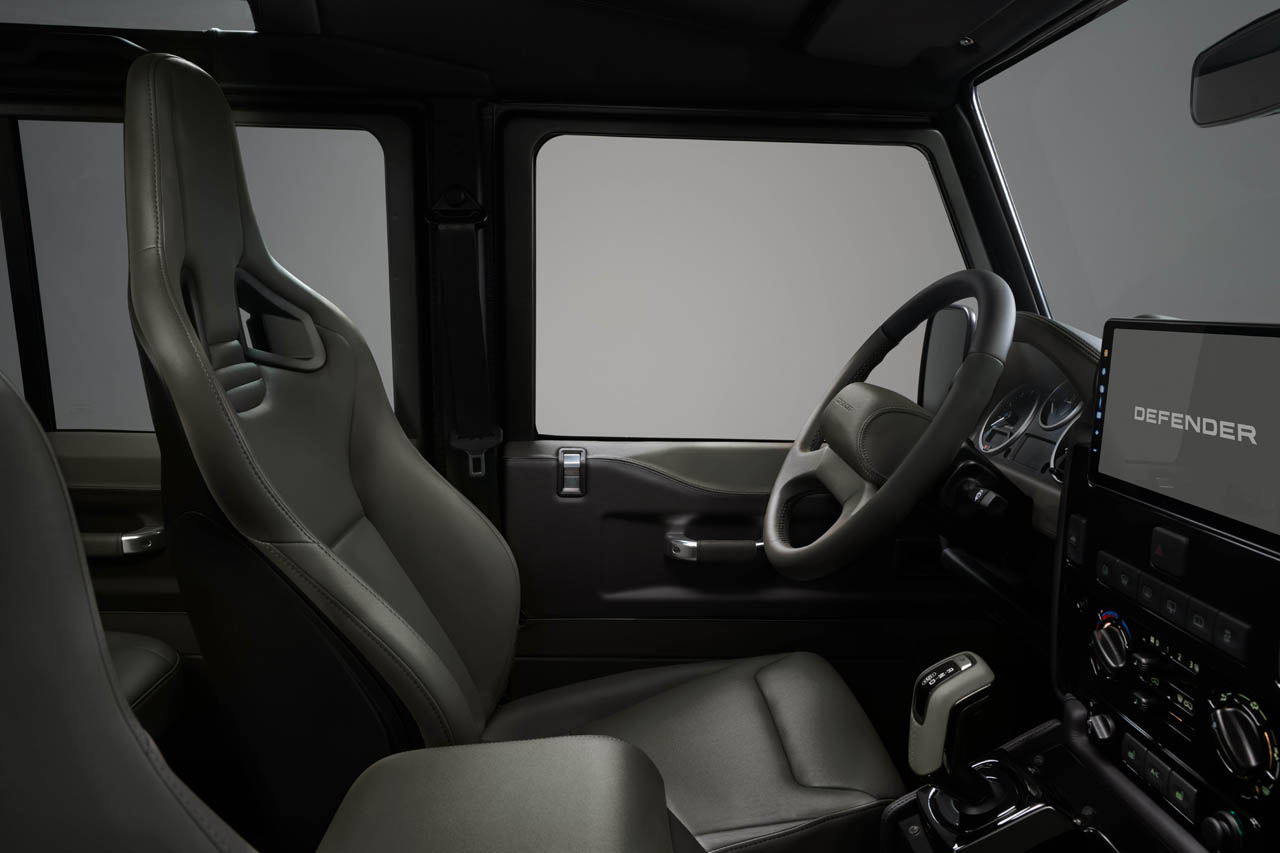 インテリアにおいても、ディフェンダー・オクタとの完璧なマッチングを目指した新たな選択肢が、クラシック・ディフェンダーとして初めて導入された。素材には軽量な「Ultrafabrics PU」が採用され、カーキグリーン、ライトクラウド、ルナの3色から選択できるほか、バーントシエナのセミアニリンレザーも用意されている。また、ディフェンダー・オクタ・ブラックとのコーディネートを望む顧客のためには、エボニーレザーも選択可能だ。