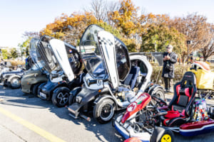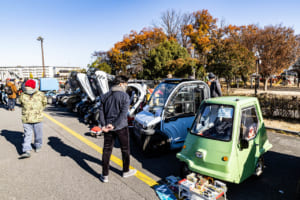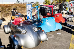 そんな熱烈な愛好家たちによるイベントだけに、国産原付四輪ミニカーのメーカーとして有名なタケオカ自動車工芸や、ジャパンモビリティショー2025にも展示された小型EVクロスケなど、話題の最新モデルはもちろん、かつてこの分野を牽引した光岡、1980年代当時に雨後の筍のごとく生まれた今は無き国産原付カー、そしてベスパカーやランブレッタ、メッサーシュミットなど海外メーカーの手がけた3輪車、さらには自作のワンオフ・モデルなども含め、会場にはおよそ80台ものマイクロカーがずらりと展示され、訪れた多くのギャラリーの注目を集めていた。