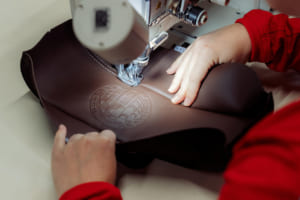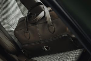 ウィークエンダーバッグは、車両内装と同じ「トリュフブラウン」のレザーと「チョークベージュ」のステッチで作られ、フロントポケットの裏地にはシート中央部と同じF.A.グリッド生地が使用されている。また、バッグ外側のポケットには、車両のエンジンフード・グリルバッジと同じアニバーサリーロゴのバッジも刺繍されている。