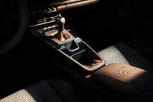 インテリアでは、「トリュフブラウン」のクラブレザーに「チョークベージュ」のデコラティブステッチを施し、特別な「F.A.グリッドウィーブ」織り生地がシート中央部に組み合わされた、特別なものとなっている。この織り物生地は、グローブボックスやボードブリーフケース、ラゲッジコンパートメントのリバーシブルマットにも使用されている。