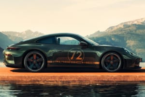 この特別な911GT3は、F.A.ポルシェが1980年代に所有していた911(Gシリーズ)からインスピレーションを得て仕立てられた、個性的な内外装が特徴となっている。エレガントなヘリテージデザイン要素を盛り込んで、ポルシェ・ゾンダーヴンシュにより90台が限定生産される予定だ。そのうち1台は、F.A.ポルシェの息子であるマーク・ポルシェがすでに購入している。