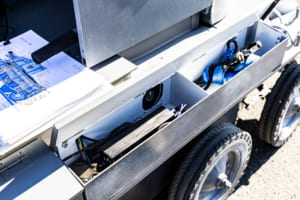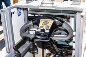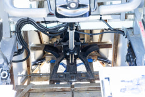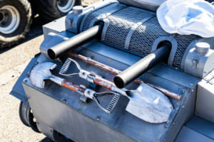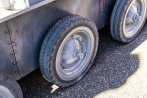 「シャシーは角パイプで製作しています。駆動系はスズキ・セニアカー(ハンドル型電動車椅子)からの移植。クリスティー戦車は実車でも履帯(いわゆるキャタピラ)なしの装輪走行も可能なので、これなら小さなレプリカを作れると思いまして」