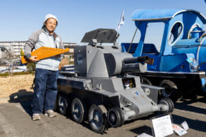 車体はアルミ複合板、砲塔はFRP、砲身は鉄パイプとさまざまな素材が使われている。あのタミヤからは1/35MMシリーズのプラモデルも出ているし、写真集などの資料もあるとはいえ、ここまでリアルな“スケールモデル”に仕上げるとはプロモデラーもびっくりだろう。しかも内蔵スピーカーからエンジン音を出すギミックまで備えていて、ギャラリーの中には思わずマフラーに手をかざす人も。
