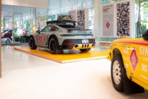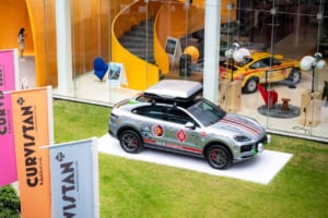 「アドベンチャー」ゾーンには、マレーシアでタイ向けに製造された「カイエンS E-ハイブリッド・クーペ」が飾られた。これは、バンコクからシュトゥットガルトまで22000キロメートル、17カ国を61日間かけて横断し、その耐久性と汎用性を証明した車両である。