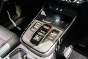インテリアの質感向上においても、開発陣の挑戦的な姿勢が見て取れる。須藤氏が「力技と言っちゃうとあれですが」と前置きして紹介したのは、ピアノブラックのパネルに木目調加飾を合わせるという手法だ。