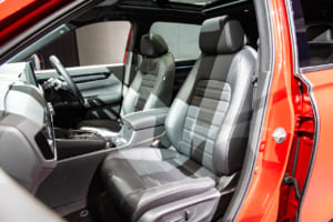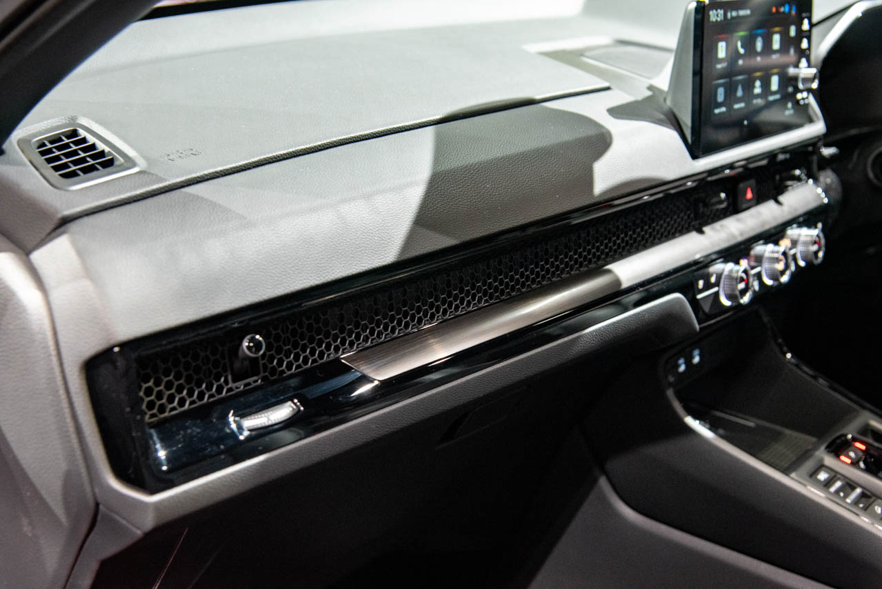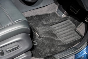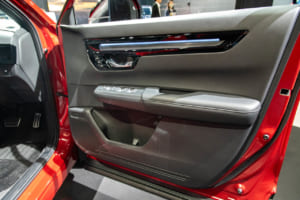 通常、加飾の上にさらに加飾を重ねるようなデザインは、煩雑になりがちで避けられる傾向にある。しかし新型CR-Vでは、これを巧みにバランスさせることで、奥行きのある上質感を表現した。CMF(カラー・マテリアル・フィニッシュ)を担当した岩崎氏は、部品構成をシンプルにしながらも、こうしたコーディネートによって全体の塊感を演出したと語る。