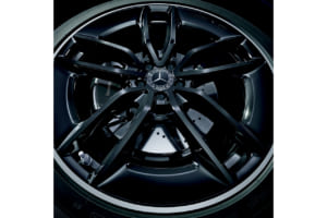 ナイトパッケージの採用により、ドアミラー、 ルーフレール(クーペ除く)、フロントリップ、リアバンパーをブラック仕上げとし、ドアハンドル上部はダーククロームで全体を引き締めている。また、黒を基調とした22インチAMGアルミホイールが足元に存在感を演出、イルミネーテッドステップカバー(ブラック)も装着される。