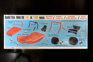 AMTは1968年に1/25スケールでマンクスをキット化。キットNo.は「T299」で成型色はイエロー。カスタム・パーツがふんだんに付属し、ストリート、バハなど4仕様から1仕様を選んで組める贅沢な体裁となっている。前述の通り、前年の1967年にメキシカン1000での優勝などで大いに注目を集めたことがキット化を後押ししたのだろう。