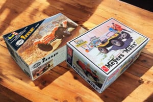 雑誌同様、往時のデューンバギー人気を映しているのが玩具や模型の類だ。ここでは本国アメリカ製プラモデル・キットを改めてご紹介しておく。砂丘やビーチといった西海岸の環境とホットロッド的着想の産物と言えるメイヤーズ・マンクスに相応しいのは、同じカリフォルニアに在った「Revell(レベル)」社だと思うが、実際のところ同車をプラモデル・キット化したのはデトロイトとの関係が深いミシガン州トロイの「AMT(エーエムティー)」社だった。