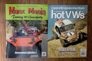 マンクスが本国アメリカで初めて本格的に取り上げられた雑誌記事は、「HOT ROD magazine(ホットロッド・マガジン)」誌1966年8月号である。表紙はブルース・メイヤーズ自身が運転するマンクスがジャンプしている写真で有名。