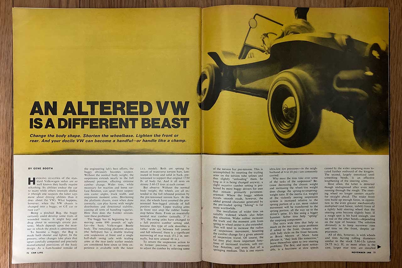 そんな時期にあって、マンクスに代表されるFRP製ボディのデューンバギーの流行は、ホットロッドやカスタム系の雑誌媒体にとって願っても無い好材料だったと言える。