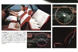 前期型セダン1300XLの内装は黒のビニールレザーに白黒のハウンズトゥース(千鳥格子)というコンビネーションであったが、同じような仕立ての車両をこのカタログの中に見つけることはできない。近いようで遠い、微妙な距離感にヤキモキさせられる、筆者にとってはそんなカタログだ。